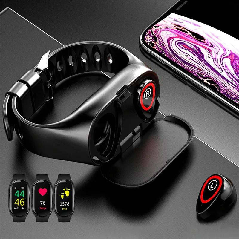Promo Hot 2-in-i Earbuds Smart Watch Bluetooth Sports Bracelet Blood Pressure Heart Rate Wristband MVI-in